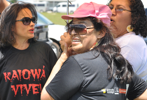 A assistente social Elenir Coroaia, da etnia Kaingang, a 3ª maior do país, foi incisiva ao falar da decisão da Justiça Federal de reintegração de posse das terras no Mato Grosso do Sul. “Para um Judiciário como o da região do Mato Grosso do Sul, que é ocupado por parentes de fazendeiros, e um governo que menos demarcou terras nos últimos 20 anos, os fatos que vêm ocorrendo, não só com os Guarani-Kaiowá, mas com todos os povos indígenas, demonstram que a Constituição Brasileira vem sendo atacada e os direitos indígenas alijados”. Coroaia chamou a atenção também ao fato de que a comunidade já havia se constituído na área, com escola, agricultura de subsistência, moradia e outros aspectos culturais que foram desconsiderados pela justiça.