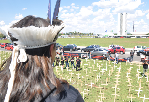 “Nossas lideranças estão sendo assassinadas”, denunciou o índio Elizeu Lopes, da etnia Guarani-Kaiowá, que participou na última sexta (19/10) de um ato público na Esplanada dos Ministérios, em Brasília (DF), com o objetivo de chamar a atenção da sociedade para a questão. “Solidarizamo-nos em defesa dos povos indígenas que, ao longo da história, repetidas vezes, têm sido vítimas de violência, maus tratos, ausência de políticas públicas e descaso”, afirmou Humberto Verona, presidente do Conselho Federal de Psicologia (CFP), entidade que organizou a mobilização juntamente com o Conselho Indigenista Missionário (Cimi).