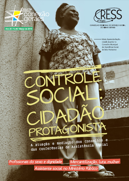 O novo Boletim Conexões Geraes acaba de ser lançado. O tema central dessa edição é o papel dos Conselhos e das Conferências de Assistência Social na efetivação do Controle Social, e como o Serviço Social está inserido nesse contexto. Na capa, Maria Aparecida Bayão, representante da Regional Oeste, no Conselho Municipal de Assistência Social de Belo Horizonte e um exemplo de cidadã que reivindica seus direitos.