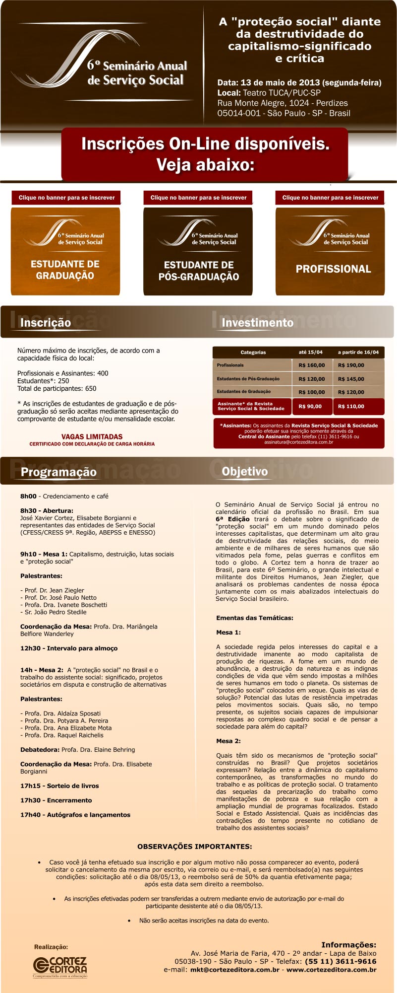 Abertas inscrições para 6º Seminário Anual de Serviço Social