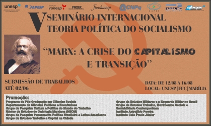 A Universidade Estadual Paulista (Unesp) promove, de 12 a 16 de agosto, na cidade de Marília (SP), o 5º Seminário Internacional Teoria Política do Socialismo – Marx: Crise do Capitalismo e Transição.SEDE: (31) 3527-7676 | [email protected]