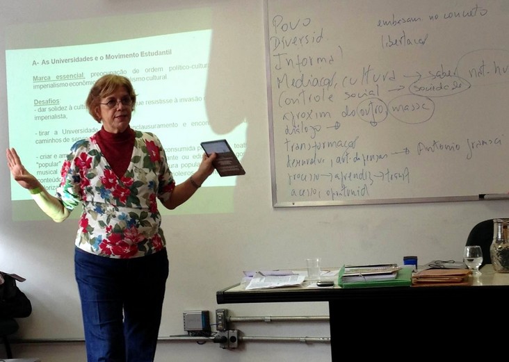 Os conceitos do filósofo e cientista político Antonio Gramsci orientam a apresentação de Maria Lídia (foto), durante este minicurso, tais como as definições teóricas, práticas, limites e possibilidades da chamada educação popular.
