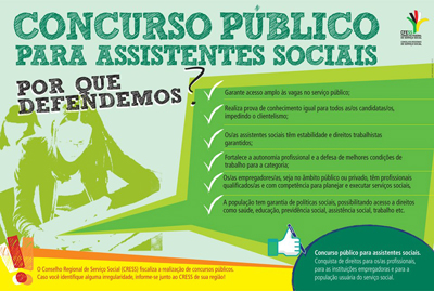 O Conjunto CFESS-CRESS promove ações permanentes na defesa do concurso público para a categoria.