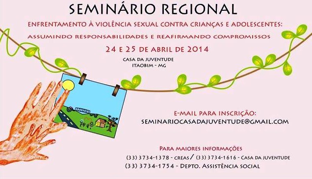 O programa Polo de Integração da UFMG no Vale do Jequitinhonha, em parceria com o projeto Casa da Juventude, realiza nos dias 24 e 25 de abril, em Itaobim, o Seminário Regional Enfrentamento à Violência Sexual Contra Crianças e Adolescentes – Assumindo responsabilidades e reafirmando compromissos.