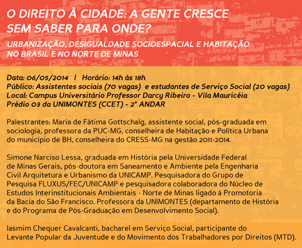 14h30 – Mesa Redonda – O direito à cidade: a gente cresce sem saber pra onde?
