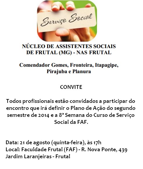 Núcleo de Assistentes Sociais de Frutal convida para reunião