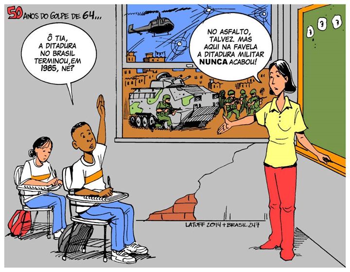 O ano de 2014 marca os 50 anos do início da ditadura militar que durou mais de duas décadas e deixou marcas que até hoje incidem sobre a população brasileira, principalmente a população negra. O Brasil tem a polícia mais assassina do mundo. Divulgado no início de novembro, o Anuário Brasileiro de Segurança Pública aponta que em 2013, as polícias brasileiras mataram, em serviço, mais de duas mil pessoas. Outros levantamentos apontam que a maioria das vítimas são os jovens negros.