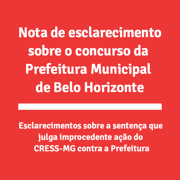 Dentre as inúmeras ações judiciais promovidas pelo Conselho para adequação de Editais de Concurso, o CRESS-MG ajuizou uma ação contra o Edital nº 02/2012, para provimento do cargo de Analista de Políticas com habilitação em Serviço Social da Prefeitura de Belo Horizonte, em trâmite na 8ª Vara Federal da Seção Judiciária de Minas Gerais, processo nº 28889-25.2012.4.01.3800.