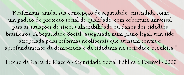 Em 2000, durante o 29º Encontro Nacional CFESS-CRESS, ocorrido em Maceió (AL), foi redigida a Carta de Maceió – Seguridade Social Pública é Possível, contendo os itens do que hoje é tido pelo Serviço Social brasileiro como concepção ampliada de Seguridade Social.