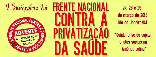 “A situação da saúde pública no Brasil é crítica. O avanço das privatizações, a transferência maciça de recursos públicos para o setor privado e o subfinanciamento crônico impedem o SUS de avançar na assistência à saúde do povo”. É com este alerta que a Frente Nacional contra a Privatização da Saúde,movimento do qual o CFESS faz parte, organizará seu 5º Seminário Nacional.