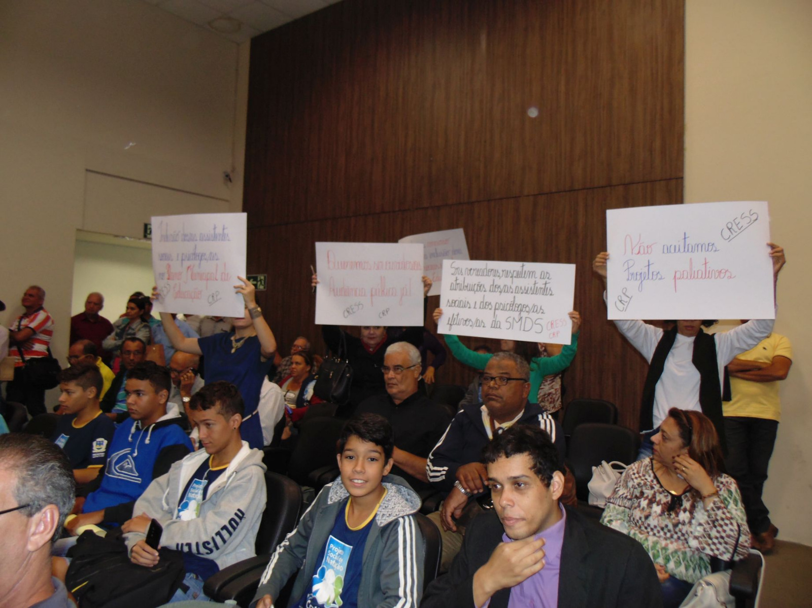 Na oportunidade, as representantes dos conselhos de classe reforçaram o apoio das entidades, que defendem a inserção dos assistentes sociais e psicólogos na política de educação municipal, mas solicitaram adequações do PL. Os profissionais presentes se manifestaram por meio de cartazes, reforçando a solicitação dos conselhos de profissão.