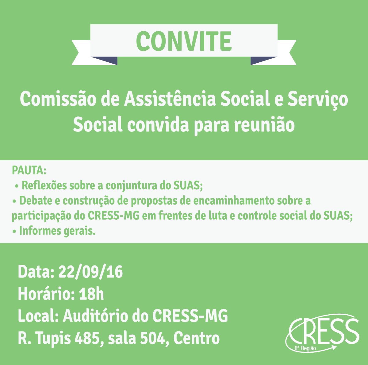 Convite: Reunião da Comissão de Assistência Social e Serviço Social