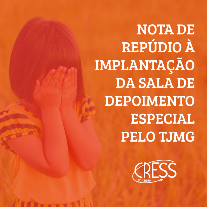 O Conselho Regional de Serviço Social de Minas Gerais – CRESS 6ª Região, por meio da Gestão Seguindo na Luta – Pelo fortalecimento da categoria e em defesa do projeto ético-político (2014-2017), vem a público repudiar a implantação da sala de “Depoimento Especial” pelo Poder Judiciário de Minas Gerais, coordenado pela Coordenadoria da Infância e da Juventude – COINJ, que será instalada no Centro Integrado de Defesa dos Direitos da Criança e do Adolescente da Comarca de Belo Horizonte, com o objetivo de realizar inquirição de crianças e adolescentes vítimas de abuso e exploração sexual.