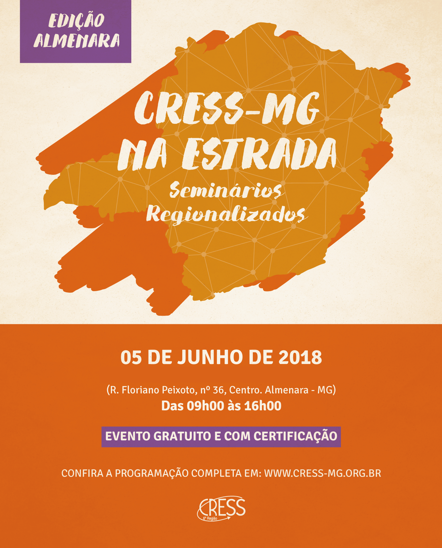Já estão abertas as inscrições para o Atividade Regionalizada – Edição Almenra, que acontece no dia 05 de junho. O evento é gratuito e integra o Projeto CRESS-MG na Estrada – Atividades Regionalizadas, que tem como objetivo a interiorização das ações de formação permanente do Conselho, com vistas à valorização da profissão e contribuindo para o aperfeiçoamento técnico, teórico e político das e dos assistentes sociais.