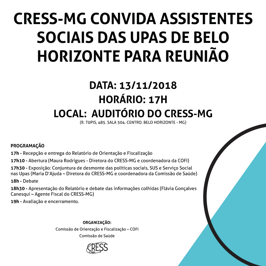 CRESS-MG convida assistentes sociais das Upas para reunião
