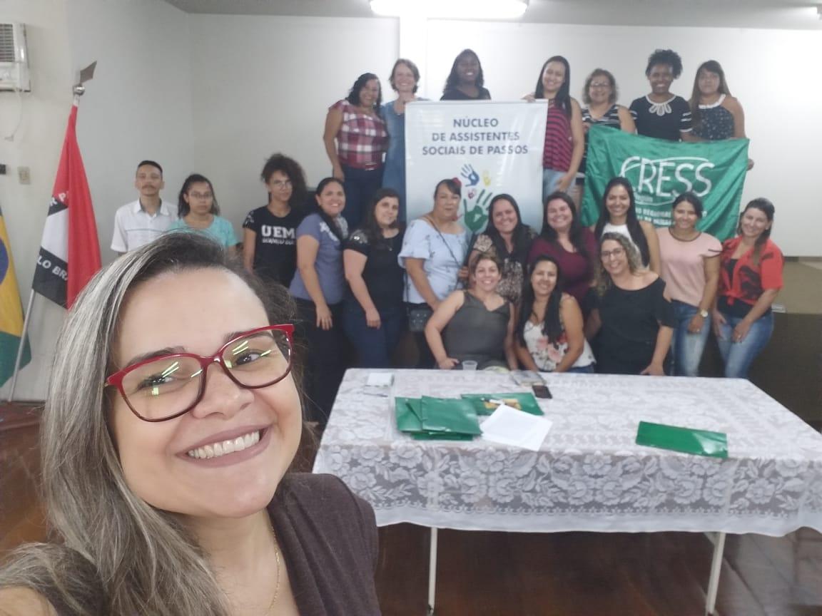 A Seccional Uberlândia promoveu no dia 26 de fevereiro, em parceria com o Núcleo de Assistentes Sociais (NAS) de Passos, uma discussão sobre “Ações em defesa do SUS e das condições de trabalho dos e das assistentes sociais”. O evento teve como convidadas a assistente social e mestre em Política Social Nathalia Albino e a coordenadora da Seccional, Glaucia Ramos.