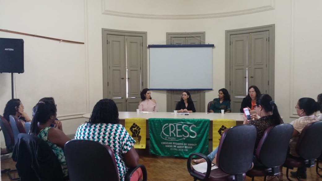 O debate teve como convidadas as assistentes sociais Ana Maria Ferreira, prof.ª. da Faculdade de Serviço Social da UFJF, Thassia Soares, assistente social da UFJF, e Isabella Lamarca, diretora da Seccional, coordenadora da CPP e trabalhadora da área da Educação