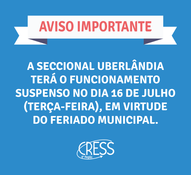 Seccional Uberlândia terá funcionamento suspenso no dia 16/07