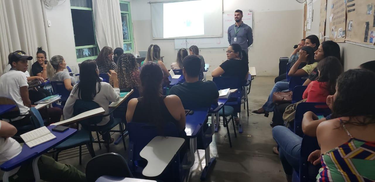 Agente fiscal em Unaí, durante atividade de orientação coletiva, "Diálogos sobre o exercício profissional"