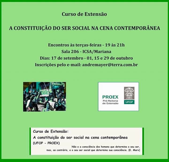 Encontros às terças-feiras – 19 às 21h Sala 206 – ICSA/Mariana