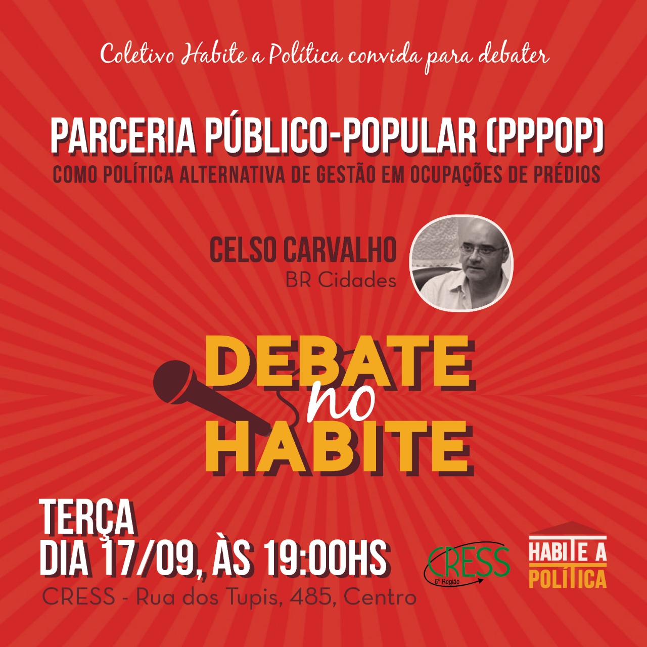 O Coletivo Habite a Política, com o apoio do CRESS-MG, promove na próxima terça-feira, 17 de setembro, em Belo Horizonte, um debate sobre “Parceria público-popular como política alternativa de gestão em ocupações de prédios”. Nesta edição do “Debate no Habite”, o convidado será Celso Carvalho, que tem uma ampla atuação na área de política urbana.