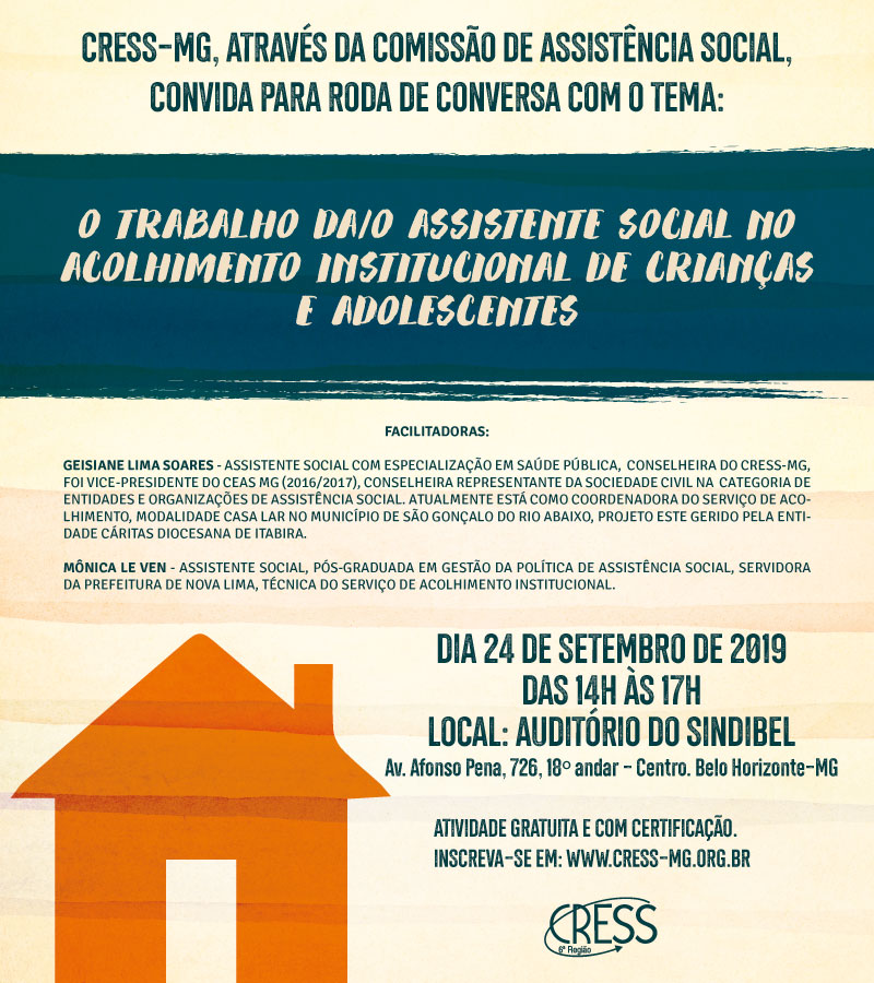 Roda de conversa O Trabalho da/o Assistente Social no Acolhimento Institucional de Crianças e Adolescentes acontecerá em novo local