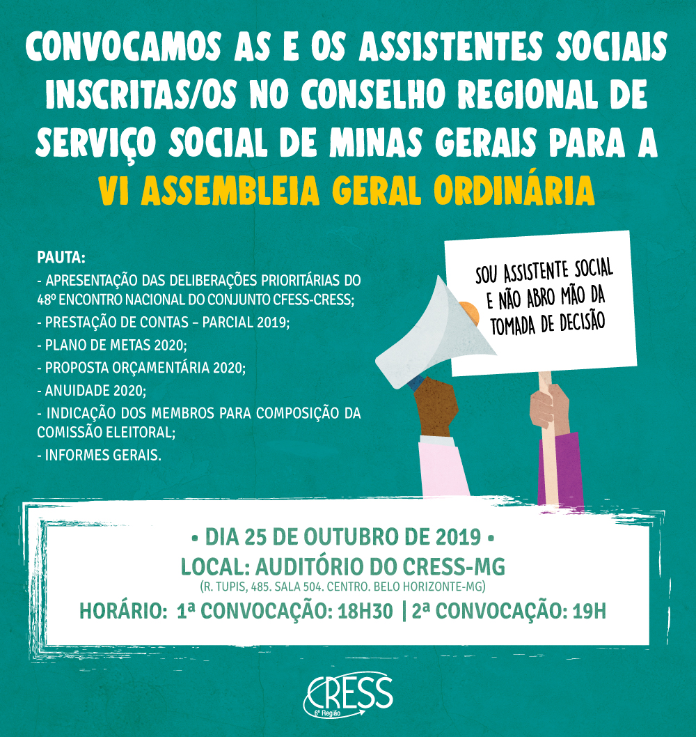 CRESS-MG convoca as e os assistentes sociais para a 6ª Assembleia Geral Ordinária