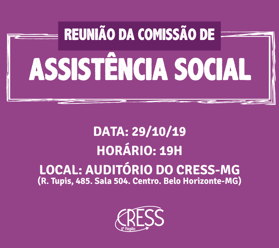 Comissão de Assistência Social convida para reunião no dia 29/10