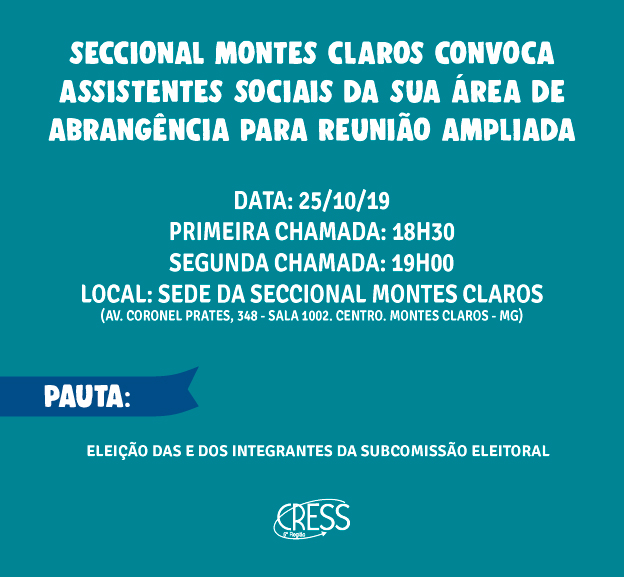 Seccional Montes Claros convoca assistentes sociais da sua área de abrangência para reunião ampliada