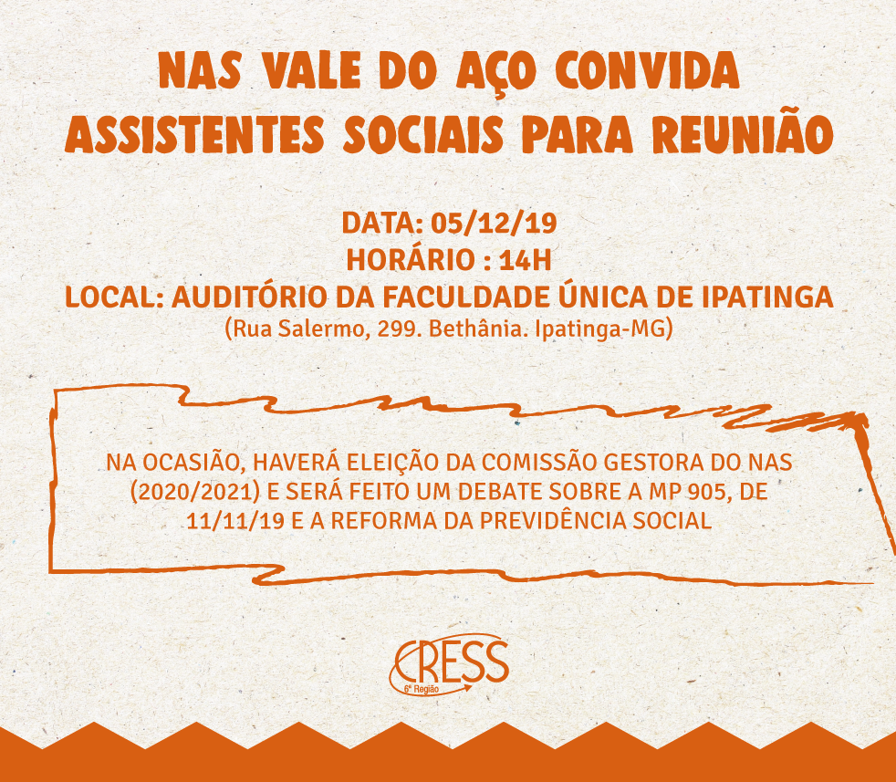 NAS Vale do Aço convida assistentes sociais para sua próxima reunião