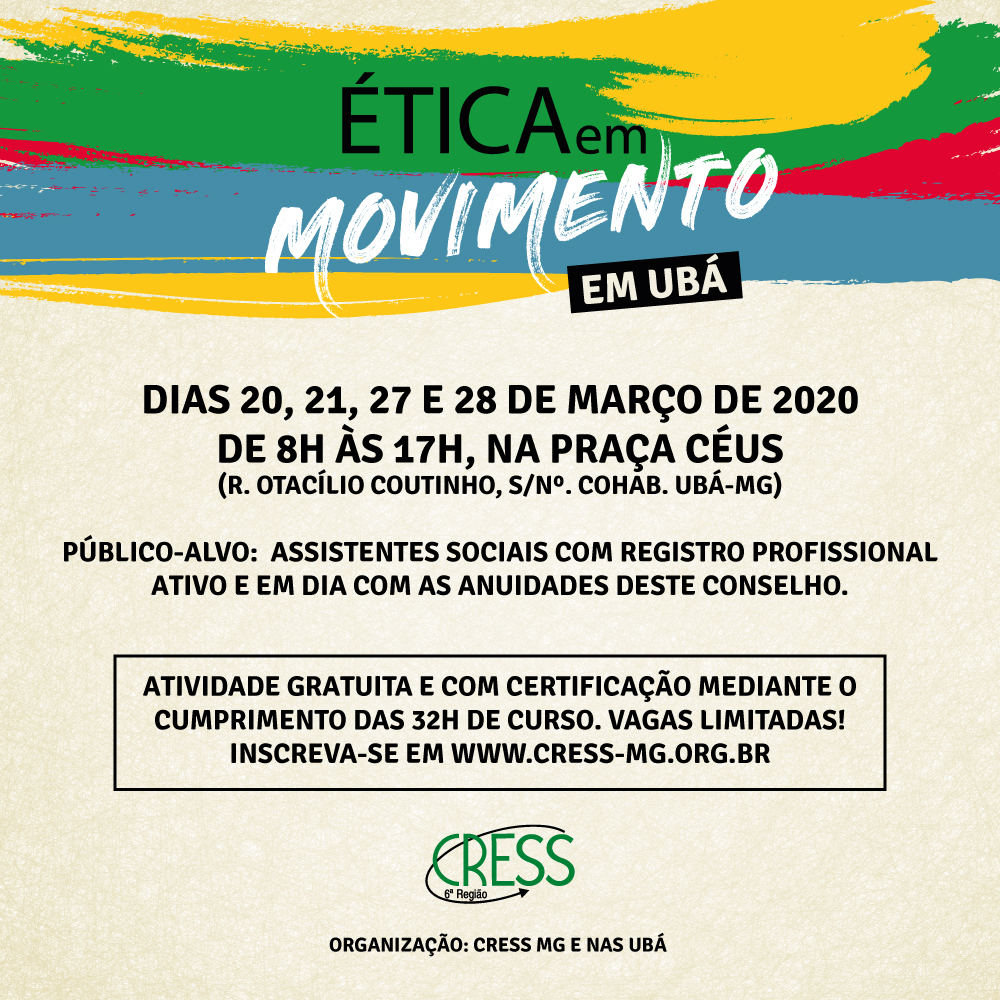Os retrocessos vividos no país revelam para as e os assistentes sociais a necessidade em reafirmar o compromisso com a liberdade e a garantia dos direitos da classe trabalhadora. Diante deste cenário, o CRESS-MG realiza a primeira edição de 2020 do Curso Ética em Movimento, na cidade de Ubá-MG.