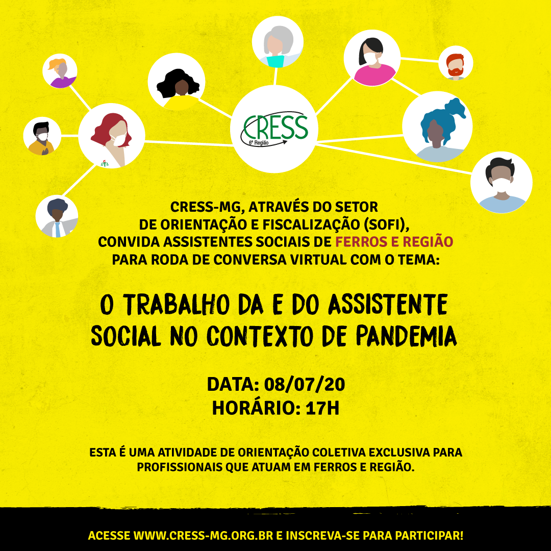 Com a pandemia, assistentes sociais mineiras/os seguem firmes na linha de frente do combate à Covid-19 e, para fomentar o debate sobre a atuação profissional neste contexto, o Conselho promove encontros virtuais com a categoria.