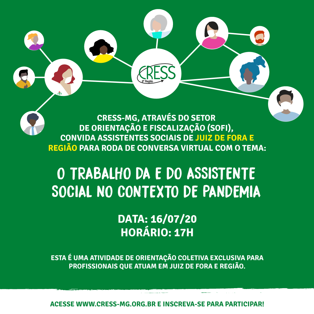 Com a pandemia, assistentes sociais mineiras/os seguem firmes na linha de frente do combate à Covid-19 e, para fomentar o debate sobre a atuação profissional neste contexto, o Conselho promove encontros virtuais com a categoria.