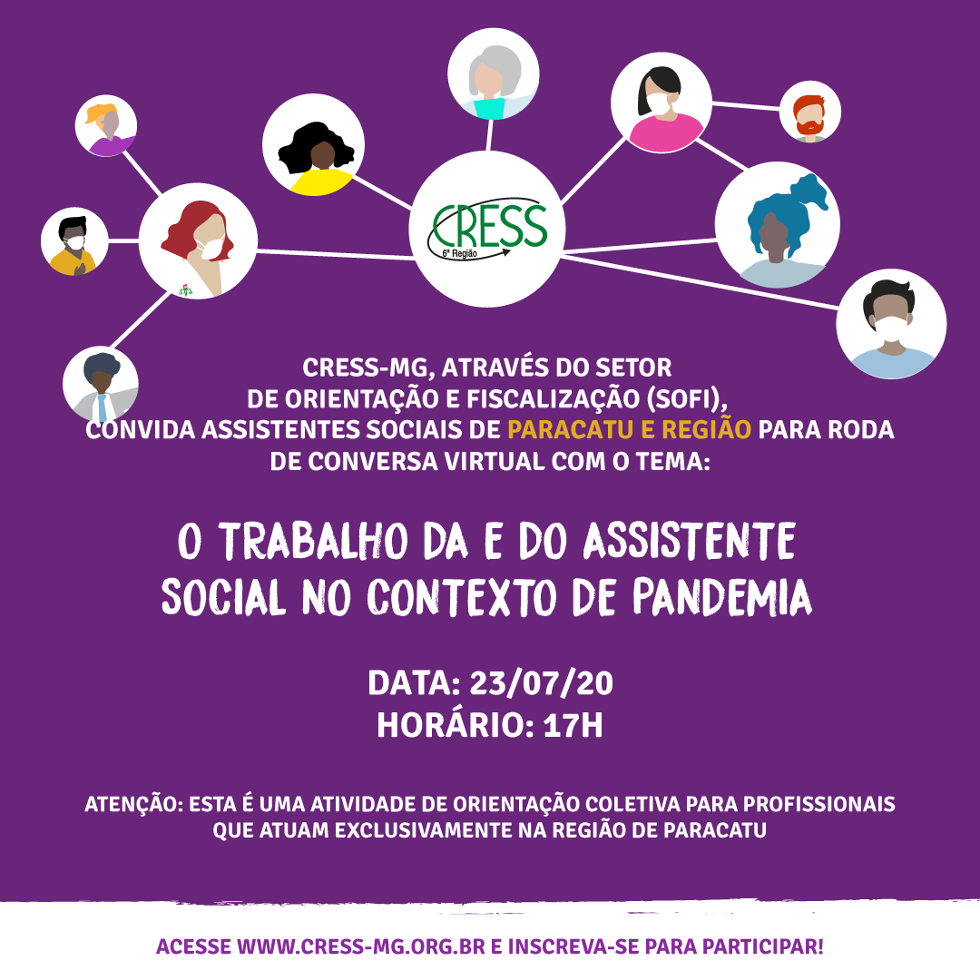O próximo encontro será com assistentes sociais que residem/atuam em Paracatu e região. As vagas são limitadas!
