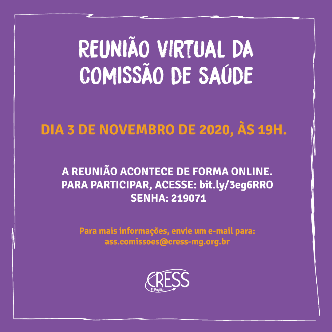 Reunião virtual da Comissão de Saúde do CRESS-MG