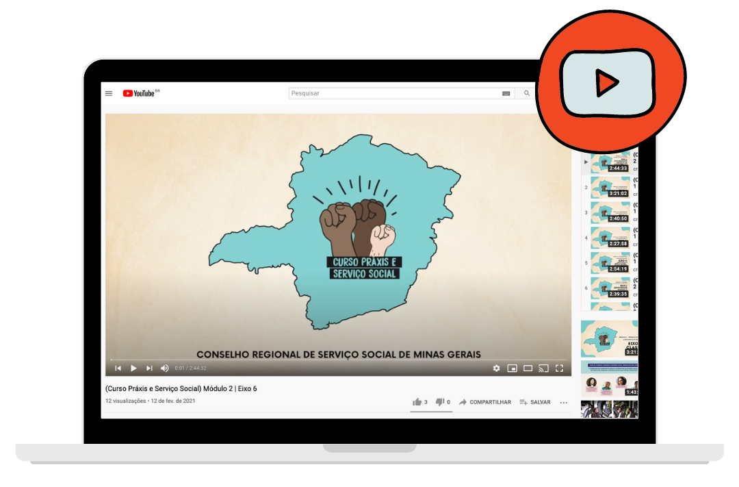 Como ferramenta estratégica para o fortalecimento profissional, os vídeos do curso foram disponibilizados no canal do YouTube do CRESS-MG.