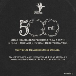No último sábado, 19 de junho, o país alcançou uma marca lamentável, revoltante e evitável: 500 mil vidas perdidas para a Covid-19. Trata-se do segundo lugar com mais mortes no mundo pela doença, atrás apenas dos Estados Unidos. E neste número, estão assistentes sociais, categoria que atua na linha de frente, seja na política de saúde, seja na política de assistência social, seja na política de previdência social, dentre outras.