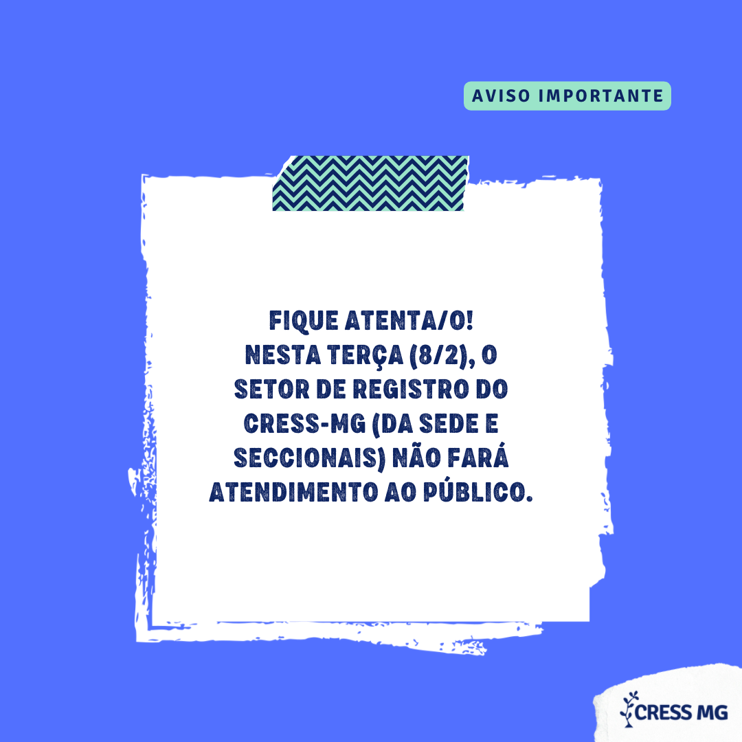 Amanhã (8/2), o setor de registro do CRESS-MG não fará atendimento ao público.