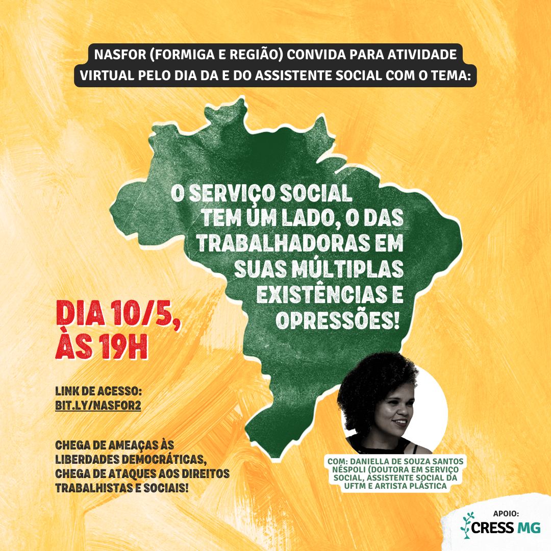 Maio é o nosso mês e, por isso, o NASFOR convida pra atividade virtual com o tema “O Serviço Social tem um lado, o das trabalhadoras em suas múltiplas existências e opressões”.
