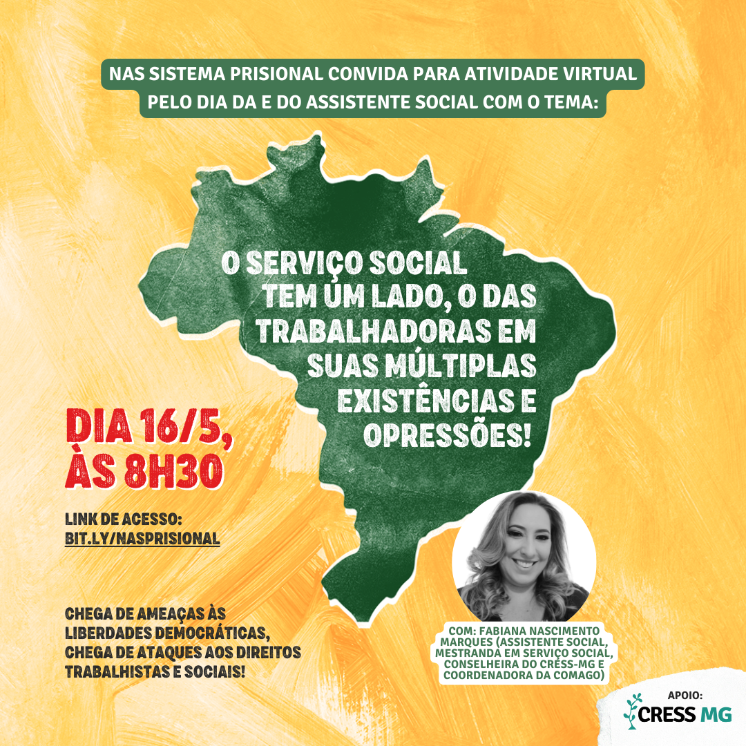 Maio é o nosso mês e, por isso, o NAS Sistema Prisional convida pra atividade virtual com o tema “O Serviço Social tem um lado, o das trabalhadoras em suas múltiplas existências e opressões”.