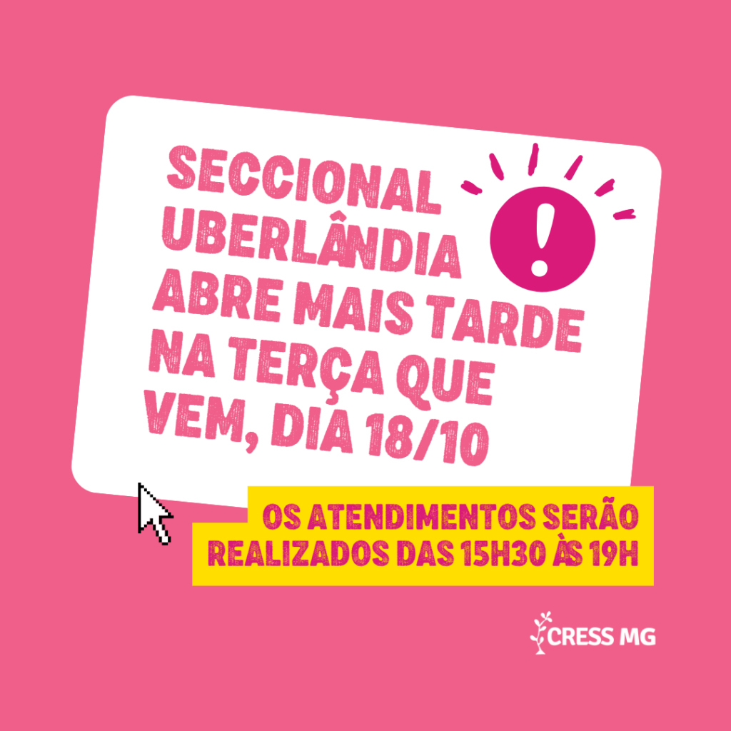 Em virtude da realização de atividades internas, o horário de funcionamento da Seccional Uberlândia sofrerá alteração na terça-feira que vem, dia 18 de outubro.