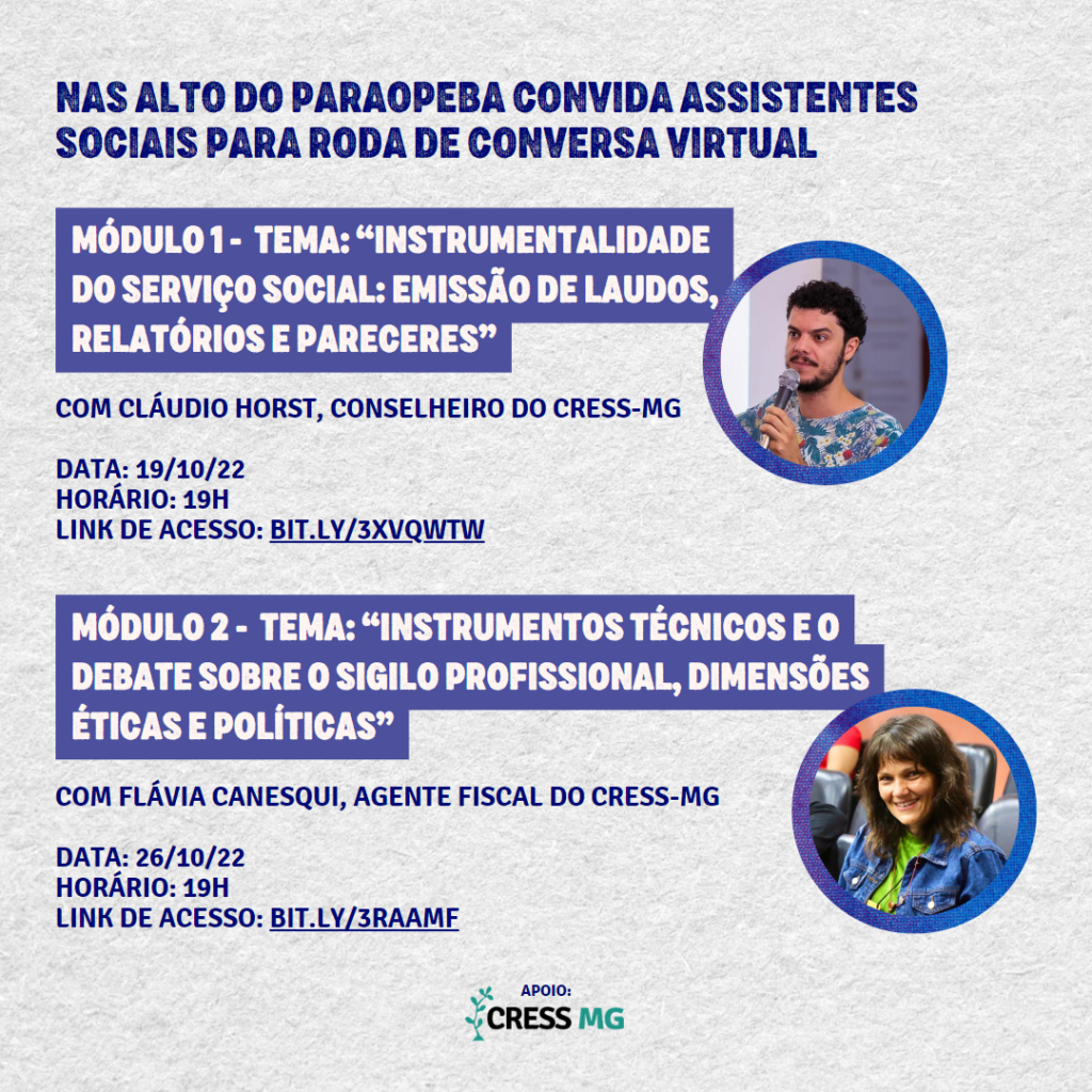 Se você é assistente social, não perca a oportunidade de participar da próxima atividade do NAS Alto do Paraopeba.