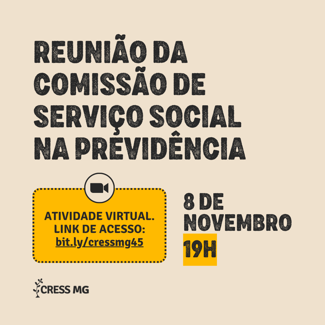 Na terça que vem (8/11), tem reunião virtual da Comissão de Serviço Social na Previdência.