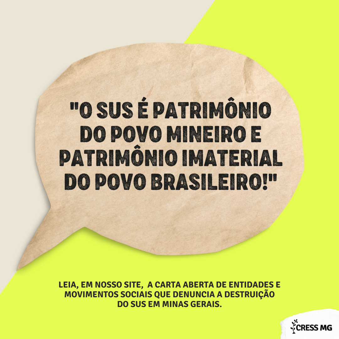 O SUS é patrimônio do povo mineiro e patrimônio imaterial do povo brasileiro!