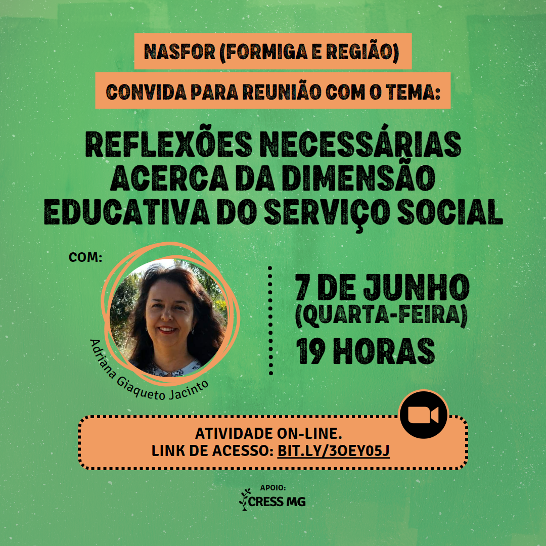 No dia 7 de junho tem atividade importante do Núcleo de Assistentes Sociais, o Nasfor, sobre A Dimensão Educativa do Serviço Social.