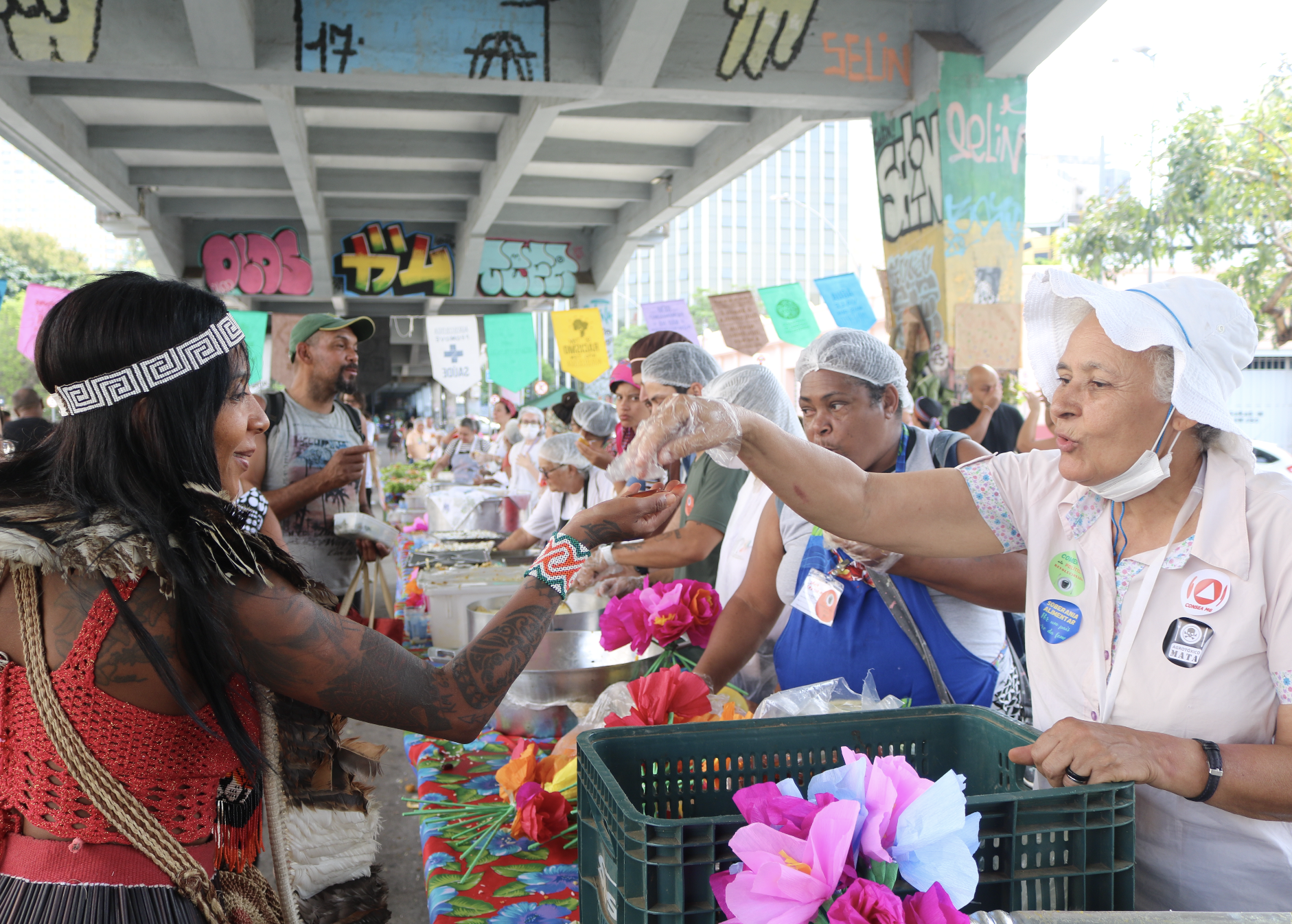 A atividade aconteceu das 11h às 16h, embaixo do viaduto Santa Tereza, em uma região da capital com expressivo número de pessoas em situação de rua. Trata-se de uma ação coletiva, promovida por militantes de movimentos sociais e profissionais como nutricionistas e cozinheiras que lutam contra a fome.