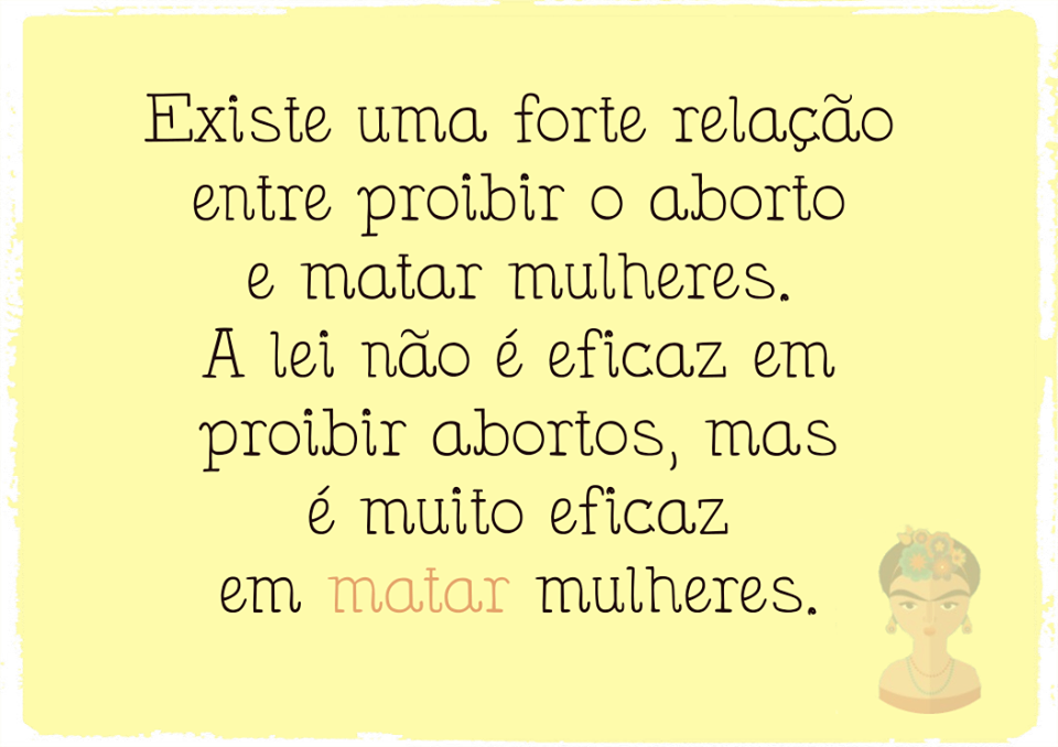 Segundo uma reportagem da Agência Pública¹, a cada dois dias uma mulher morre vítima de aborto inseguro no Brasil. No total, são um milhão de abortos clandestinos e 250 mil internações anuais por complicações.