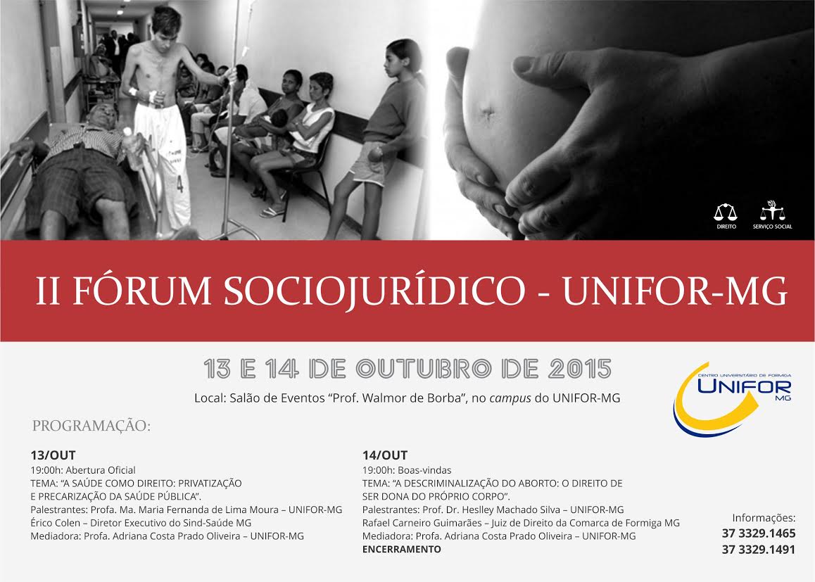 O Centro Universitário de Formiga – Unifor-MG vai sediar o II Fórum Sociojurídico, nos dias 13 e 14 de outubro, no campus da entidade. A iniciativa estabelece a interação entre os cursos de Serviço Social e Direito, com o objetivo de propiciar momentos de discussões e reflexões em torno de importantes temáticas comuns às duas áreas, além de motivar os participantes a conhecerem melhor os assuntos apresentados e debatidos.