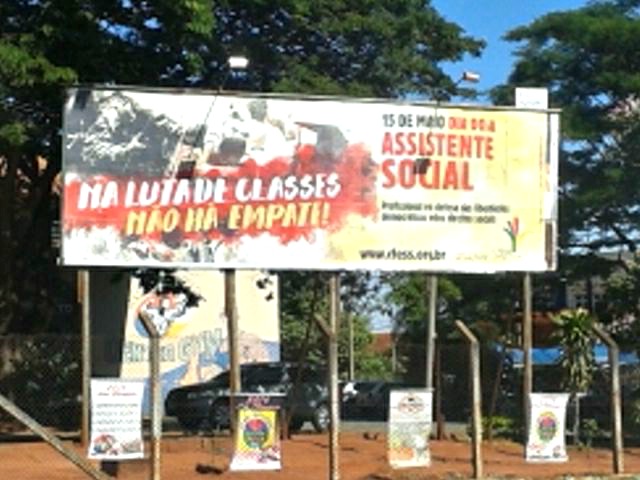 Com o intuito de dar visibilidades ao Serviço Social nos diversos cantos de Minas Gerais, o CRESS-MG providenciou outdoors para mais de 30 municípios do estado. A peça contém a campanha do Conjunto CFESS-CRESS para o Dia da/o Assistente Social "Na luta de classes não há empate – Profissional em defesa das liberdades democráticas e dos direitos sociais" e a expectativa é de valorizar as e os assistentes sociais e apresentar à sociedade um pouco do que se trata a profissão.