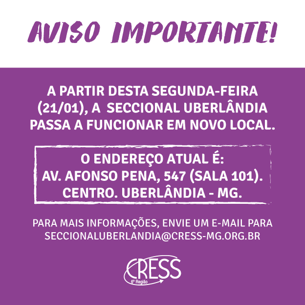 Av. Afonso Pena, 547 - sala 101. Uberlândia - MG. CEP 38400-128
